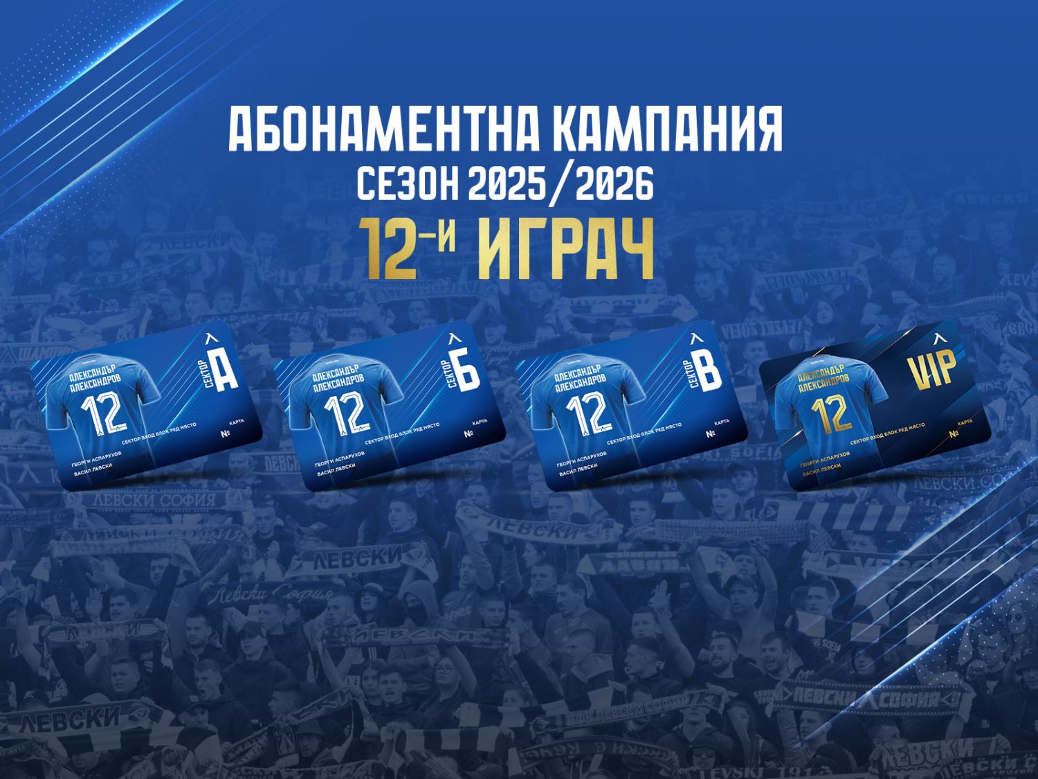 Абонаментната кампания за сезон 2025/2026 „12-и играч“ официално е в ход! Посветили сме я на най-важните хора в „Левски“ – феновете, които не изоставят отбора в добро и лошо независимо от всичко. Именно като малък жест на признателност към всички вас цените този сезон ще останат непроменени, спрямо предходния, въпреки че абсолютно всичко, включително и по организацията на двубоите, поскъпва.