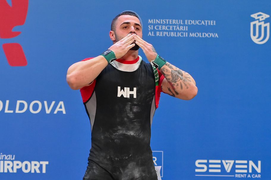 Той вдигна 188 кг в третия си опит и не просто спечели движението на еврошампионата, а и прескочи с един килограм върховото постижение на колумбиеца Лесман Паредес Монтано от Ташкент 2021.