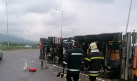 Само си представете сцената: обяд, слънцето пече и след това – хаос. Камион, чието пътуване рязко е спряло, лежи преобърнат на решаващия път Асеновград – Плодовик, както съобщава БНТ. Товарът? Пълен товар с празни бутилки с метан.