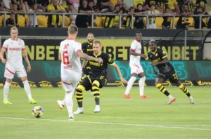 Ботев Пловдив и ЦСКА завършиха при равенство 1:1 първия си мач от новия сезон в efbet Лига. “Канарчетата” успяха да поведат първи на “Колежа”, но дузпа в края на първата част донесе точката за “армейците”.Мачът на стадион “Христо Ботев” започна на високо темпо, като и двата отбора тръгнаха надъхано в търсене на ранен гол. Постепенно ЦСКА взе инициативата, докато Ботев Пловдив чакаше своите шансове на контраатака. В 15-ата минута Йоанис Питас върна топката към Улаус Скаршем, който стреля, но много неточно.