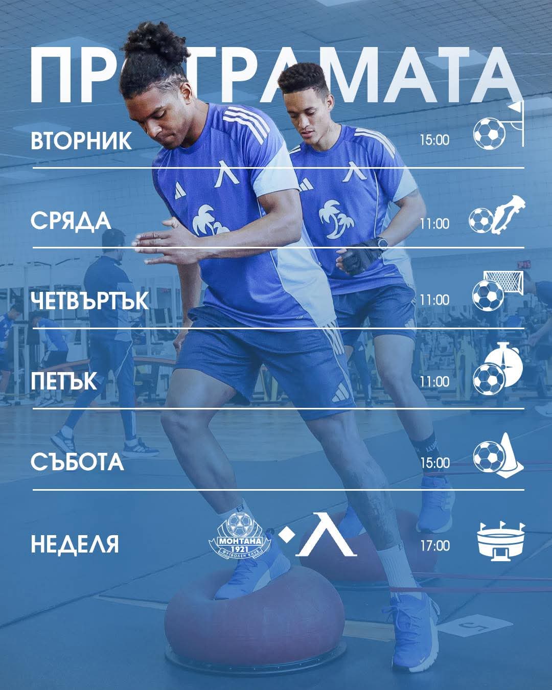 Програмата включва както закрити занимания на клубната база, така и видеоразбори, които ще помогнат на футболистите да се подготвят за конкретните предизвикателства, които ги очакват. Особено внимание се отделя на синхрона между линиите на отбора, подобряването на бързия преход и ефективността в атака. Тренерският щаб работи целенасочено върху детайли, които могат да се окажат решаващи в предстоящия мач.