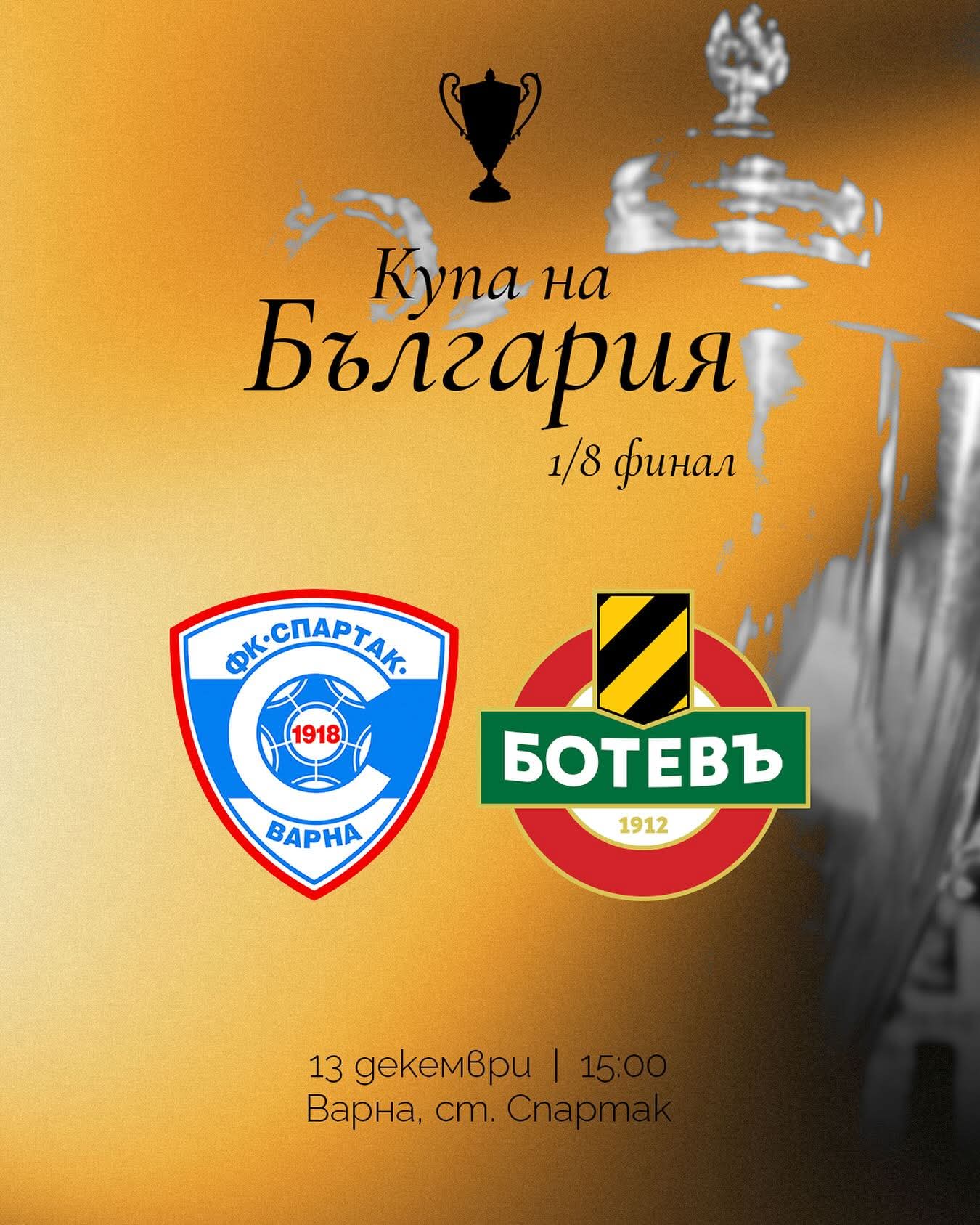 📋 Спортно-техническата комисия към БФС обяви датата на 1/8-финалния сблъсък за Купата на България срещу Спартак Варна.