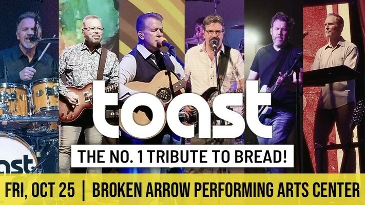 With a surprising fidelity rarely heard from a live tribute band, TOAST’s sound is often described as “spot on” to the original recordings. Audiences everywhere rave about closely their live performances sound like the cherished records they listened to back in the day. “BREAD VIRTUALLY INVENTED soft rock in the early Seventies, and the group’s biggest hits — ‘Make It With You,’ ‘If,’ ‘Baby I’m-a Want You’ and ‘Everything I Own’ — remain staples on lite-rock radio.” – Rolling Stone Over their career, Bread scored 13 hits on Billboard’s Top 100!! The two surviving members of Bread (David Gates & Robb Royer) are happily retired and enjoying their time with family and the fruits of their musical careers. Enter TOAST – The Ultimate Bread Experience who does everything possible to keep the legacy of Bread alive. TOAST presents a “feel-good” show that includes all of Bread’s top hits and brings all the memories flooding back quickly which makes their concert truly “rise” to the top as one of the favorite concerts of audiences everywhere! Tickets $29 – $55 Friday October 25, 2024 | 7PM Broken Arrow Performing Arts Center 701 South Main Street Broken Arrow, OK